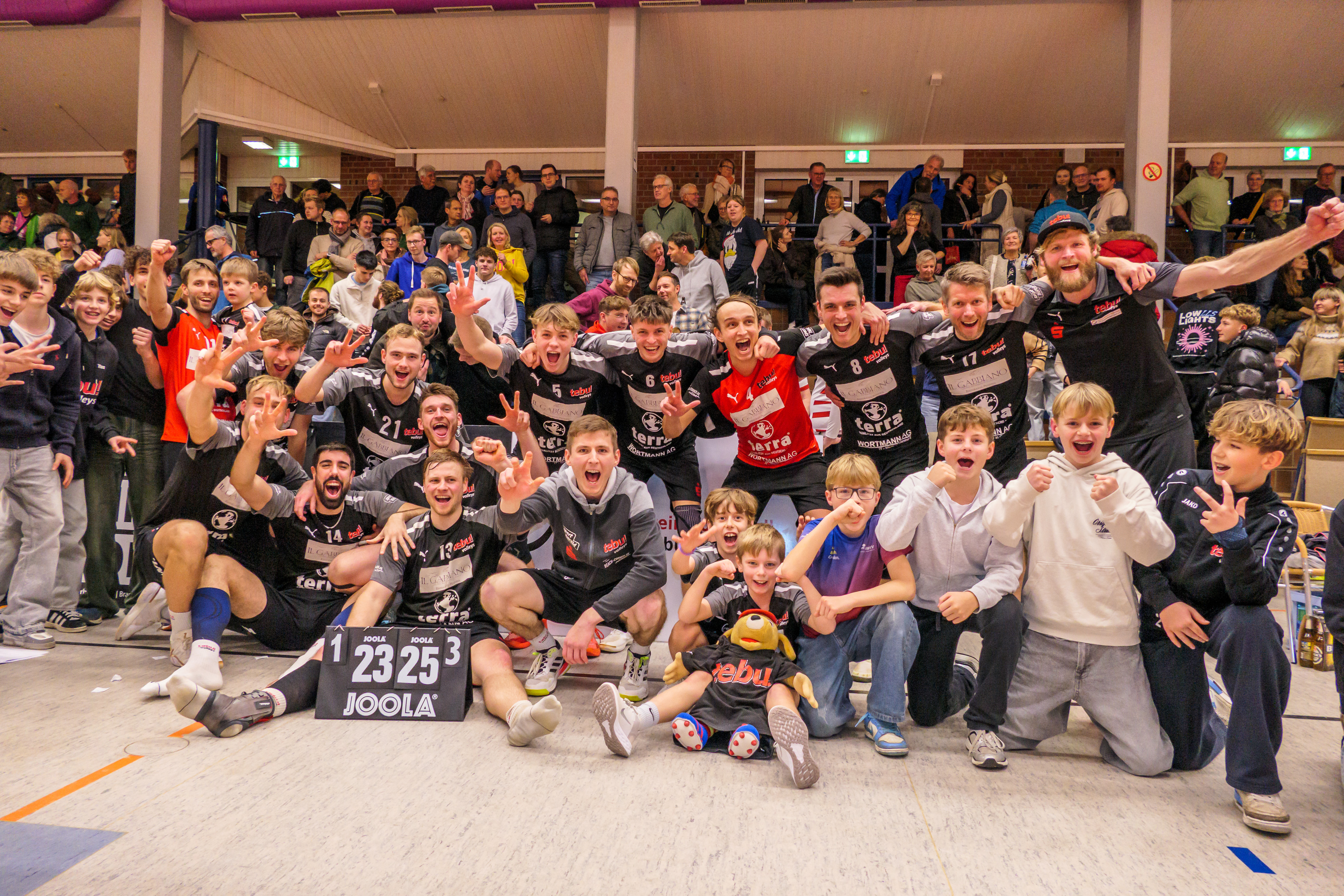 Da wehte ein Hauch von Bundesliga durch den Burgweg am Freitag. Jannik kündigte am Mikro die „Mutter aller Derbys“ an und die Anhänger beider Vereine sind ordentlich in Vorleistung gegangen. Die Halle bis auf den letzten Platz gefüllt und die Stimmung bereits beim Einlaufen am Anschlag. Und das ewige Duell konnte nachziehen - bis zum spektakulären Tebu-Sieg im vierten Satz. Das macht jetzt schon Laune auf das Rückspiel am letzten Spieltag in Lintorf.