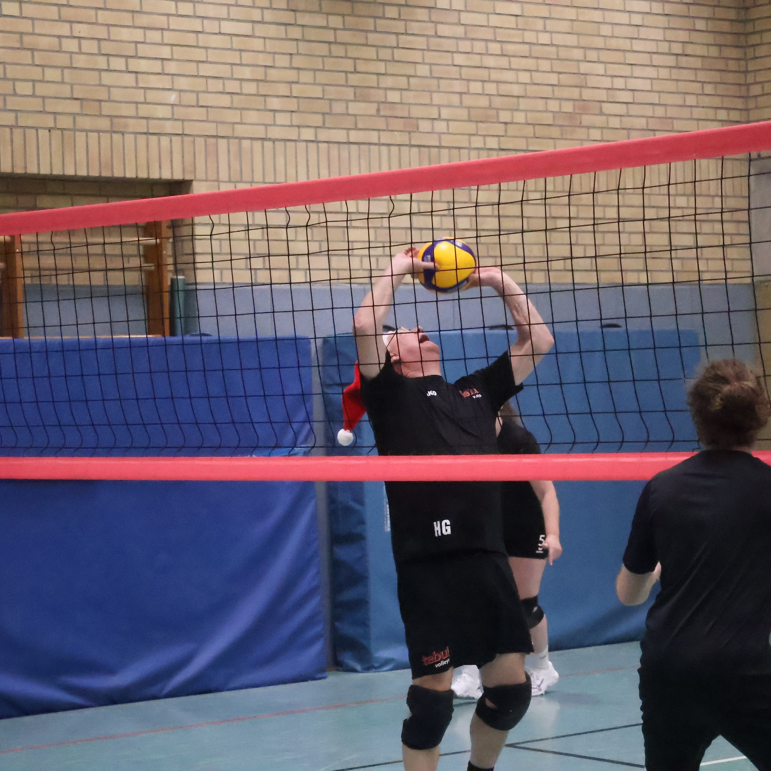 Am Samstag fand das fast schon traditionelle Weihnachtsturnier der Volleyballabteilung der Tecklenburger Land Volleys im SV Cheruskia Laggenbeck statt. „Wer nicht dabei war, der hat etwas verpasst.“ waren sich alle einig, die mitgespielt haben. Die Resonanz hätte besser sein können, dabei hatten die beiden Organisatorinnen Anneke Trappmann und Linda Schüttemeyer aus der ersten Damenmannschaft alles bestens vorbereitet. Stark vertreten waren die Drittliga-Herren, aber „Star“ des Nachmittags war Oldie Horst Gartemann, der auch 1972 das Cheruskia-Trikot überstreifte, als alles begann. Stark trumpften auch verschiedene Damen auf. Da hatten die Blockspieler einige Male das Nachsehen. Fünf Teams starteten und spielte nach dem Modus „Jeder gegen jeden“. Die meisten Punkte gab es für das Team „Die schrägen Liberosos“. Zum Team gehörten: Jan Sackermann (Libero der 1. Herren), „Hotte“ Gartemann (Allrounder), Saskia Veit (Libera der 1. Damen), Sarah Börgel (Angreiferin der 1. Damen) und Tobias Lampe (Mitte der 2. Herren). Fast selbstverständlich war beim Turnier auch Lars Fischer dabei. Es störte ihn nur wenig, dass sein Team „Wer ist Philip“ Letzter wurde, denn auch für ihn stand der Spaß im Vordergrund. Zum besten Abwehrspieler und auch Spieler des Tages wurde der Senior Horst Gartemann gewählt.