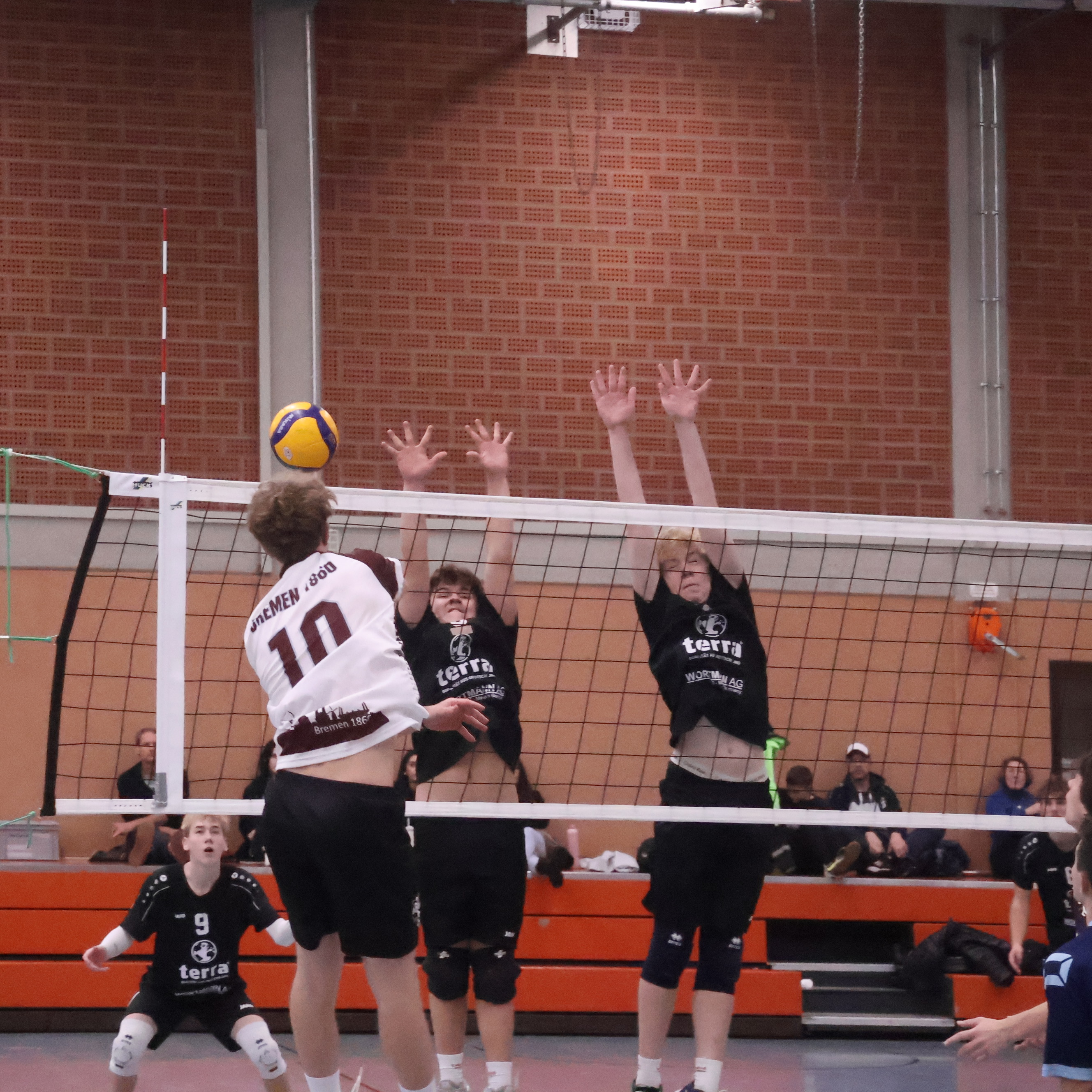 Nur mit Außenseiterchancen ging die zweite U20 der Tecklenburger Land Volleys in die Qualifikation zur Bezirksendrunde. Dass die Zinn-Schützlinge erst im „kleinen Finale“ den Einzug in die nächste Runde verpassten, damit haben die wenigsten gerechnet. Neben der zweiten Garnitur der Tebus gingen Bremen 1860, die Emder Volleys, der TV Baden, der SV Bad Laer und der TV Georgsmarienhütte in der Ibbenbürener Goethe-Sporthalle an den Start. Gleich im ersten Gruppenspiel ging es für die Tebu-Mannschaft, in der ausschließlich U18-Spieler stehen, gegen den späteren Turniersieger Bremen 1860. Der Gastgeber startete nicht schlecht, war zunächst ebenbürtig. Mit zunehmender Satzdauer wurde die Fehlerquote größer, die Hansestädter übernahmen das Zepter, behaupteten sich mit 25:20. Im zweiten Durchgang dominierten die Gäste. Probleme hatten die Tebus nicht nur mit dem starken Bremer Aufschlagspiel, auch der Tebu-Block hatte seine Probleme. Mit 25:14 gab es den zweiten Bremer Satzgewinn. Wenig zu bestellen hatte der TV Georgsmarienhütte im zweiten Gruppenspiel gegen das Bremer Team. Nach nur 28 Minuten war die 0:2-Niederlage (16:25, 12:25) des TVG besiegelt. Im letzten Gruppenspiel zwischen den Tebus und dem TVG lag der Gastgeber im ersten Satz mit 13:17 zurück, stellte aber dennoch die Weichen auf Satzgewinn. Nach dem Ausgleich zum 19:19 gehörte die Crunchtime den Zinn-Schützlingen, die mit 25:23 erfolgreich waren. Im zweiten Durchgang führten die Tebus bis zum Stand von 18:16 immer nur knapp. In der Schlussphase sorgten sie aber für klare Verhältnisse, verzeichneten einen 25:20-Satzgewinn. Im Überkreuzvergleich ging es gegen den Dritten der anderen Gruppe, den SV Bad Laer. Obwohl es in dieser Partie um den Einzug ins „kleine Finale“ ging, probierte Witali Zinn in dieser Partie einiges aus, gab auch Spielern, die noch nicht so lange mit dabei sind, Spielanteile. Auch mit geänderter Aufstellung reichte es für zwei Satzgewinne (25:15, 26:24). Im „kleinen Finale“ war der TV Baden erfahrener und eingespielter. Phasenweise hielten die Tebus dagegen, mussten aber in 17:25- und 18:25-Satzverluste einwilligen. Turnierzweiter wurden die Emder Volleys, die mit 1:2 Bremen 1860 unterlagen. „Ich bin mit dem vierten Platz zufrieden, wäre aber gerne Dritter geworden.“ hätte Witali Zinn gerne mit seiner Mannschaft noch die Bezirksendrunde gespielt, um weitere Spielpraxis für die U18SuperQuali sammeln zu können.